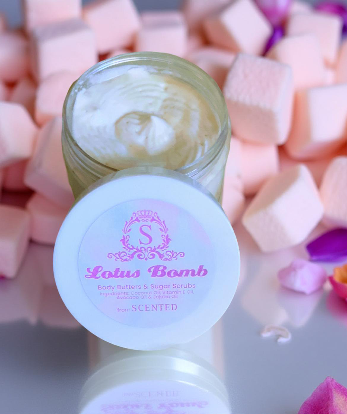 Lotus Bomb- Fruity Floral - She is sweet and pretty. This scent is well blended with hints of marshmallow.
